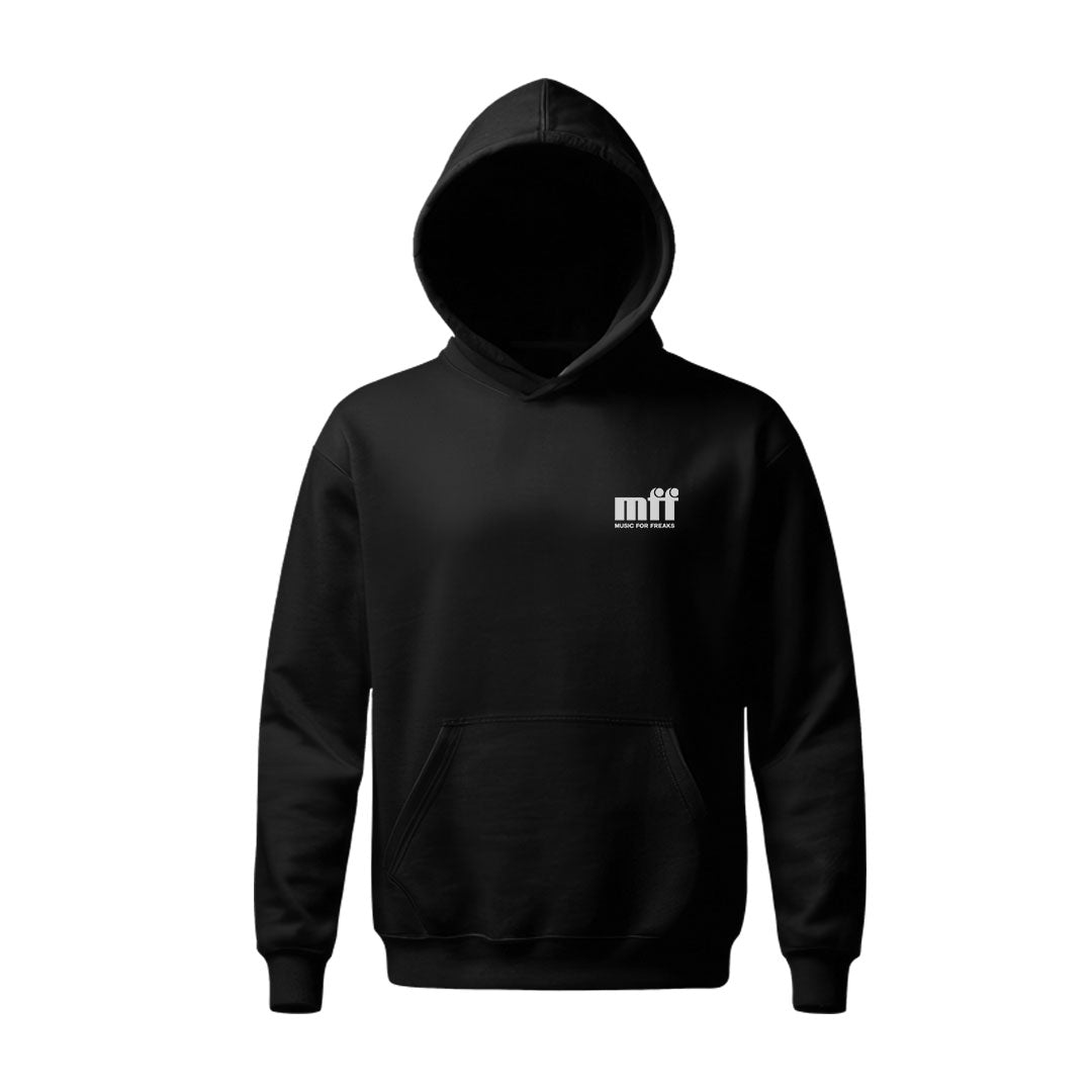 Music For Freaks Left Chest And Black Logo Print Unisex Black Hoodie