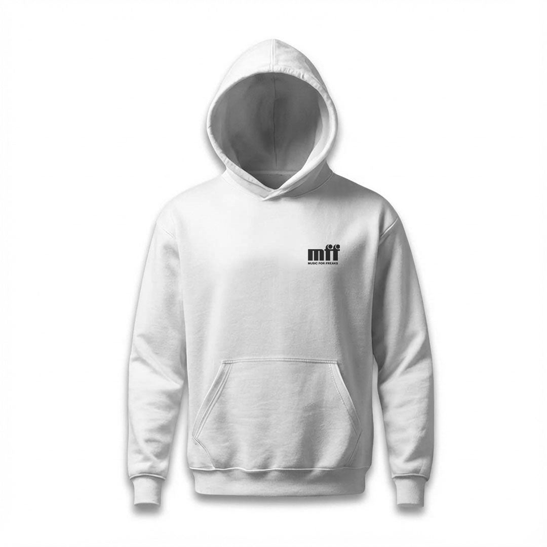 Music For Freaks Left Chest And Black Logo Print Unisex White Hoodie