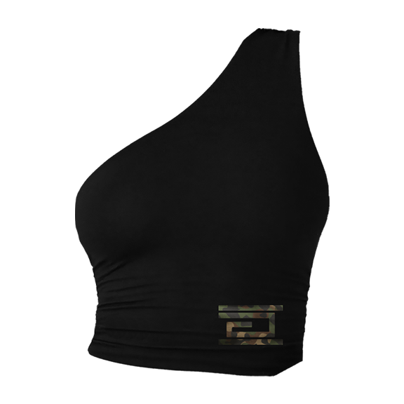 • One shoulder top. Double layer front. Silicone grip tape on front