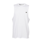 A loose-fit raw edge vest with a ribbed crew high neck. Made from a blend of soft cotton and recycled polyester.